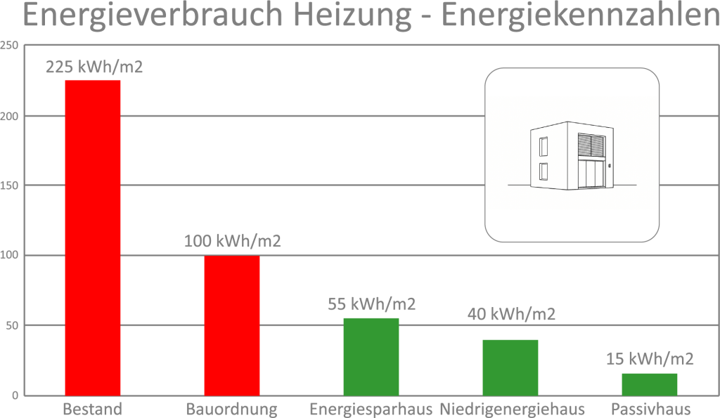 Wichtig ist dabei die Abstimmung sämtlicher Komponenten aufeinander! Die reine Wärmedämmung ist es nicht! (Stichwort: Dämmstärke, Material, Verglasungsgrößen, Verglasungsqualität, Speichermasse, Verschattung, AV-Verhältnis) Jedes Haus wird individuell berechnet und auf die Bedüfnisse des Kunden angepasst! Der jeweilige Energiekennwert wird dabei besprochen und gemeinsam fixiert.